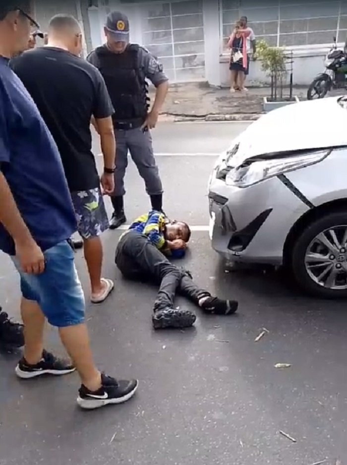 Dois bandidos são atropelados por carro e agredidos por populares quando faziam assaltos. VEJA VÍDEOS